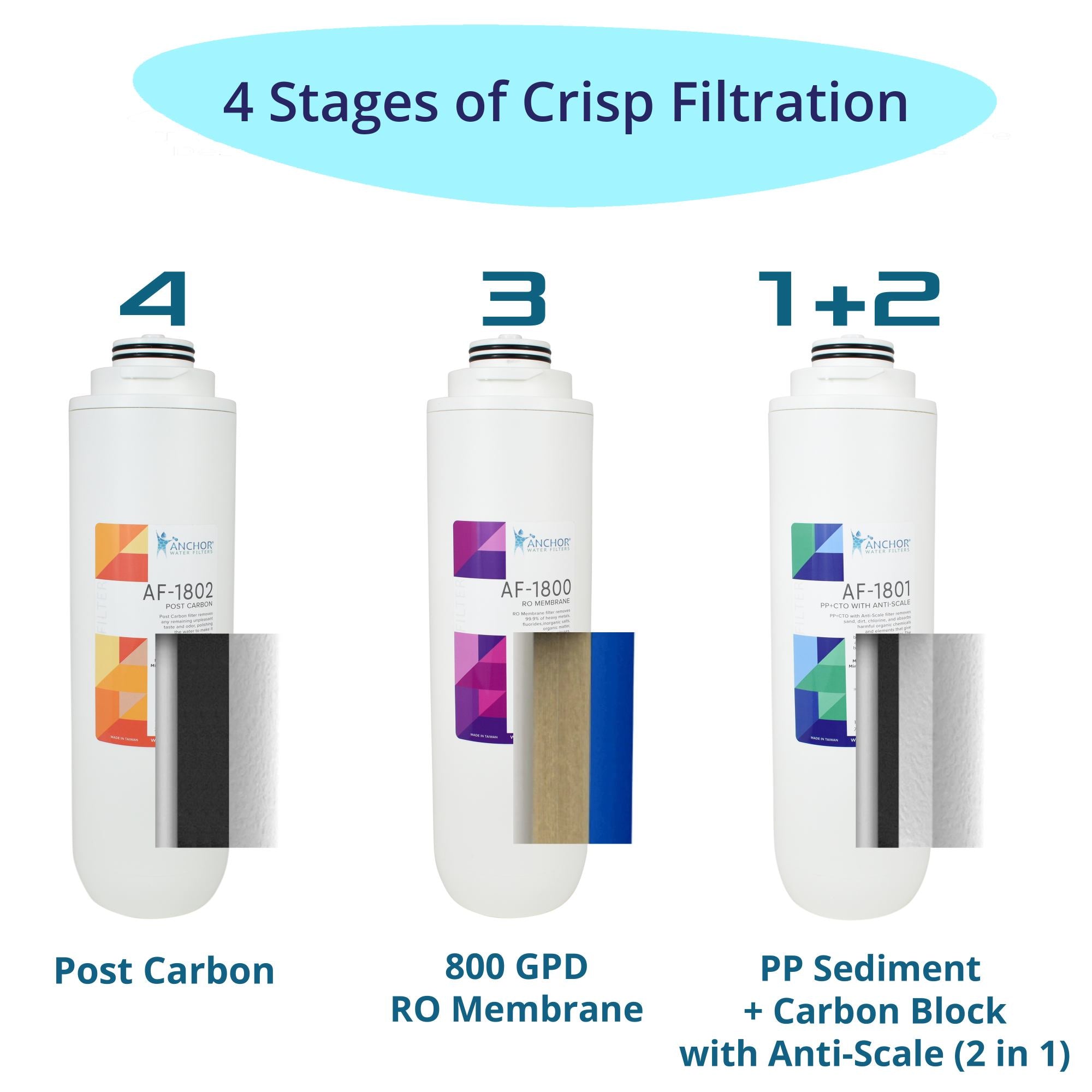 The Anchor EcoFlo Reverse Osmosis (RO) makes removing impurities and contaminants from your drinking water a simple task by combining the latest technologies in water filtration for residential use - membrane separation (reverse osmosis), activated carbon adsorption, and conventional filtration.