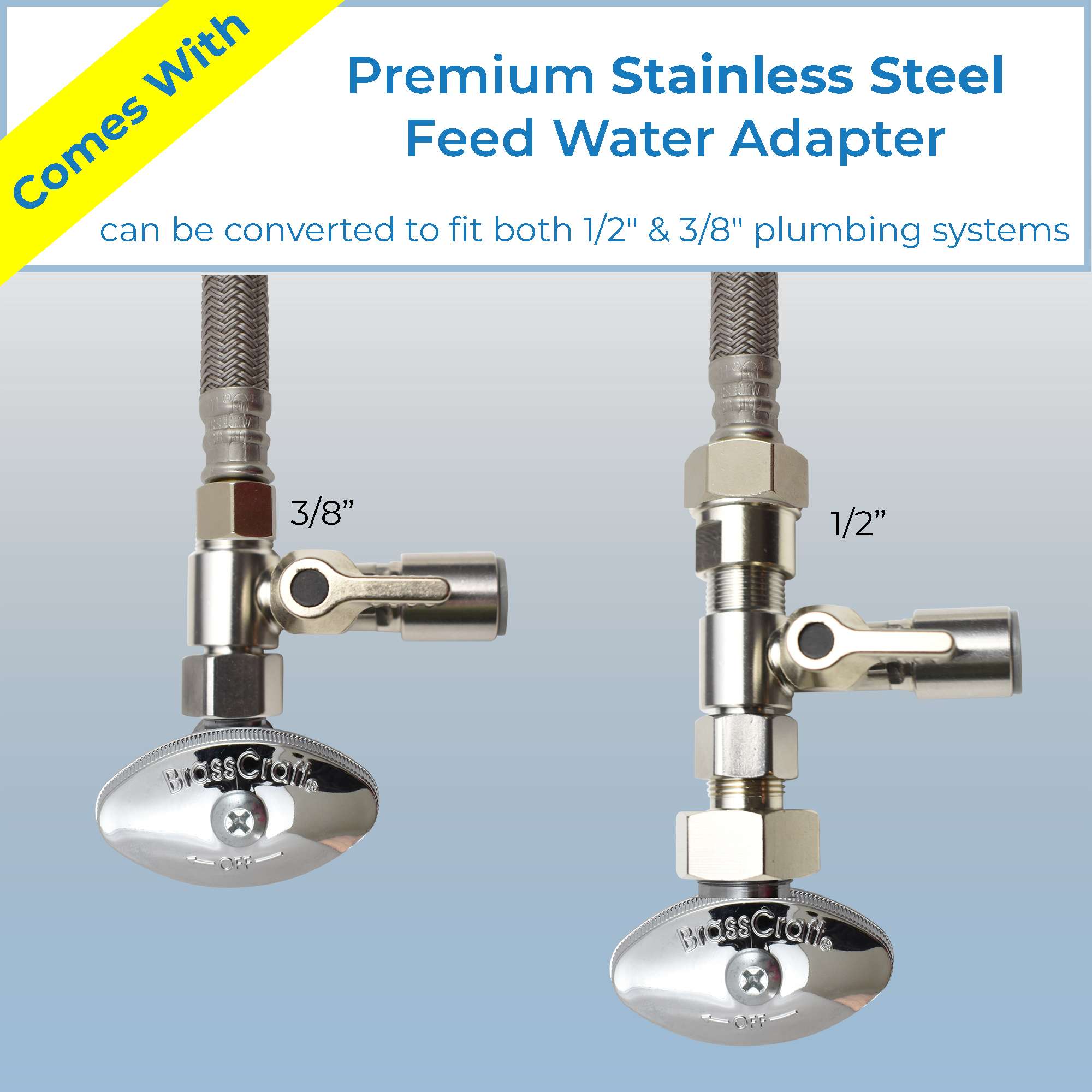 Also includes 100% lead-free Stainless Steel feed water adapter for superior durability, resistance to damage, and longer life.